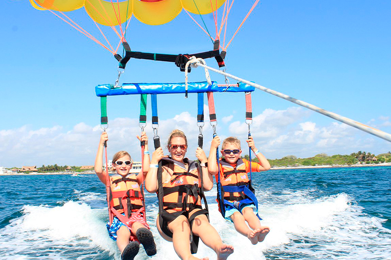 Parasail Cancun DESCRIPTION 100% Safe Boats Take off and land on the same boat. This flight can be single or double, and if the wind and weight permit, it can accommodate up to 3 passengers. The parasail is raised up to 100 meters from the boat, and once there, you’ll enjoy a approximately 30-minute ride on board the boat